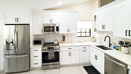 Free design • High quality all wood cabinets • Family owned • Family operated • We stay on your job until finished • Our installers, Tim and Chris Lowe, have 40+ combined years of experience • Serving Palm Beach south into Boca Raton • If you have your own installers, we can provide the cabinets in flat pack or assembled and delivered to your job